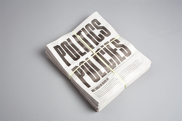The Design Week judges said: "This self-initiated project compared policies side-by-side in an objective way. The clear, no-nonsense design, presented as a newspaper, was the perfect medium for the project."