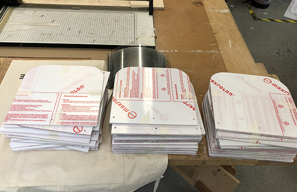 “It was a super simple design, just plastic sheeting, elastic bands and cable ties," explained Stan."We decided against 3D printing because the process was too slow, and we had enough of us to make a workflow – using a production line of guillotines and workstations.