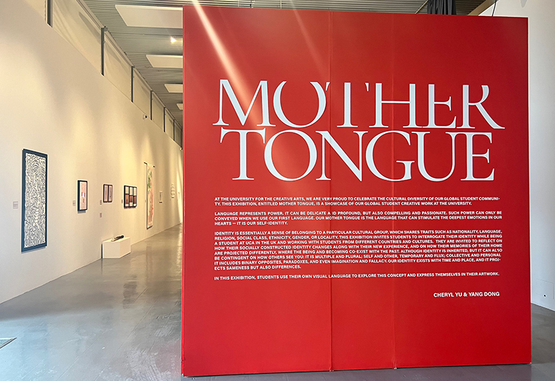 The pair are currently exhibiting their artwork at the Mother Tongue exhibition at UCA Farnham, a celebration of UCA’s diverse and global community and a showcase for our international student’s creative work. Each student has created a visual language that explores the concept of ‘self-identity’ and expresses’ their “mother tongue”